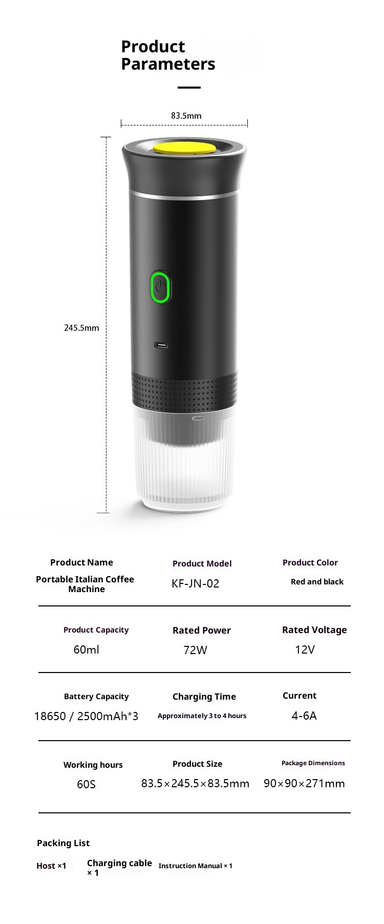 Equipped with a Type-C USB port for fast, portable charging. Supports charging while brewing, so you’re never without your coffee fix.